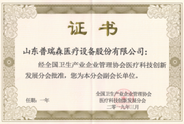 ——熱烈祝賀山東普瑞森醫(yī)療設(shè)備股份有限公司被評為副會長單位