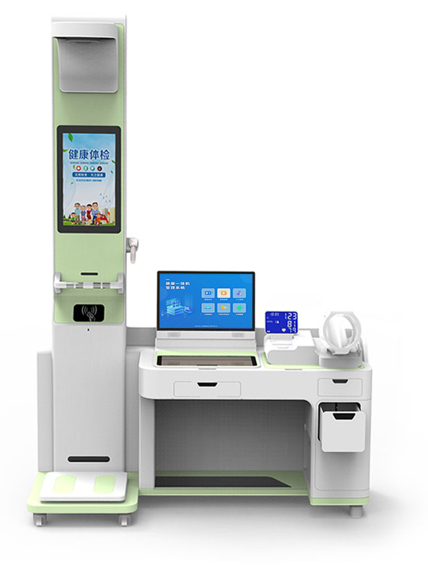 涵蓋基本公衛(wèi)體檢項目,心電檢測設(shè)備隱藏式設(shè)計, 整體弧面造型,人體工程學(xué)設(shè)計,增強用戶體驗感。